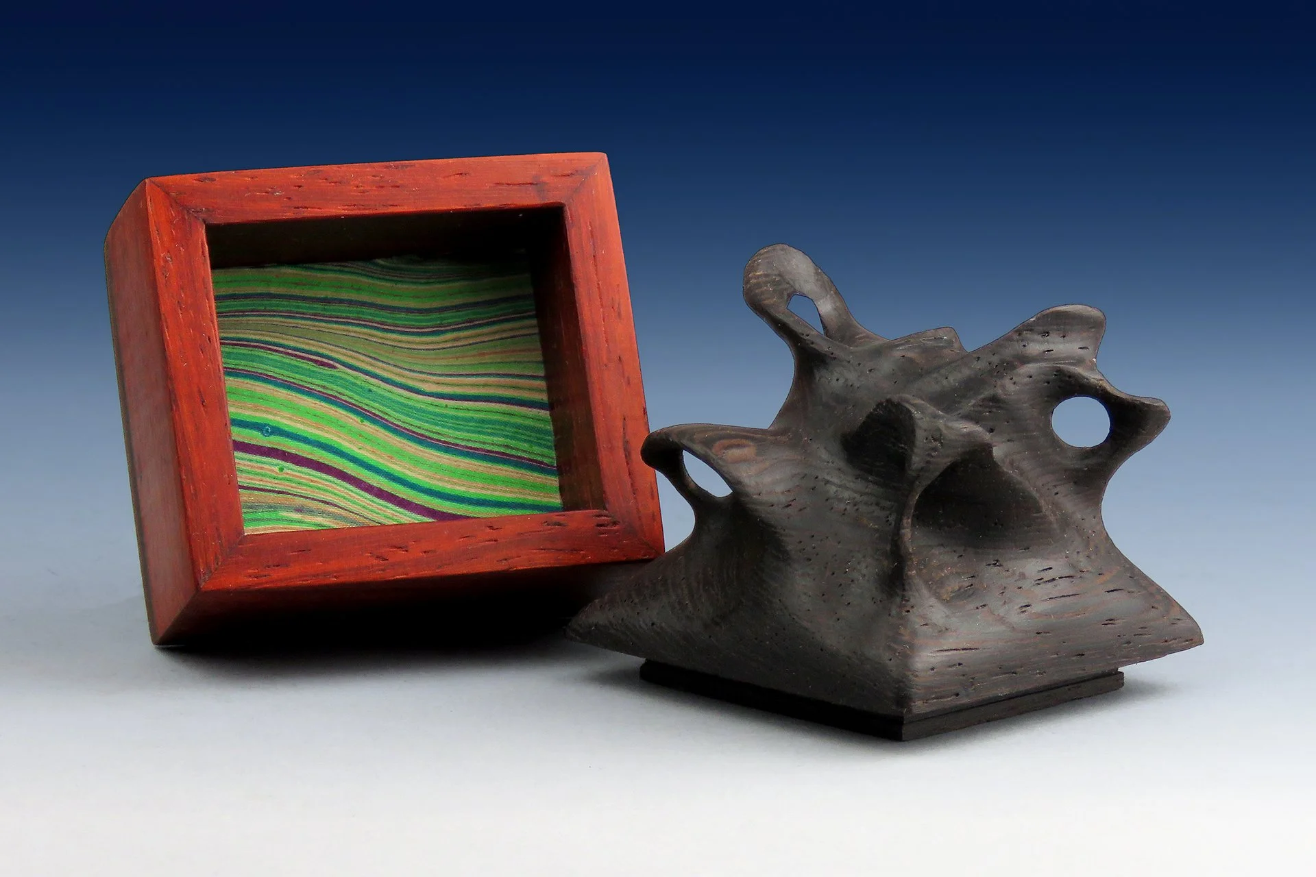 Topped with unique carved wenge sculpture