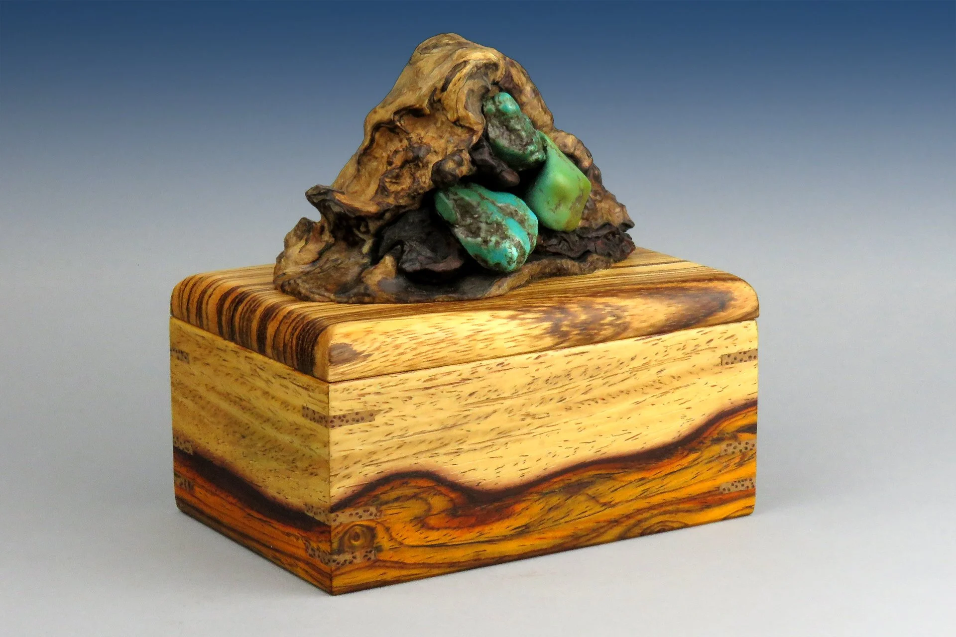 Topped with spalted burl with turquoise nuggets from Little Bluebird Mine (Nevada)